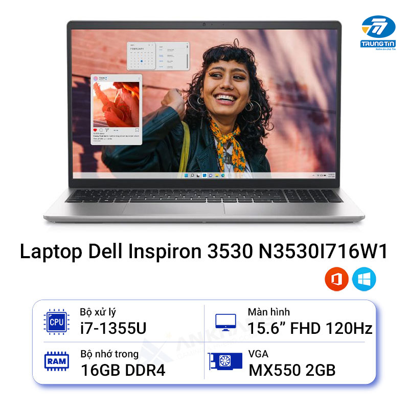 Laptop Dell Inspiron 3530 – N3530I716W1 là dòng laptop văn phòng hữu dụng, được xây dựng với bộ vi xử lý Intel thế hệ thứ 13, cho phép hoàn thành danh sách công việc đồ sộ mỗi ngày trong trải nghiệm mượt mà và trơn tru.